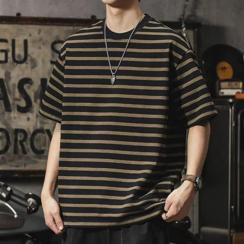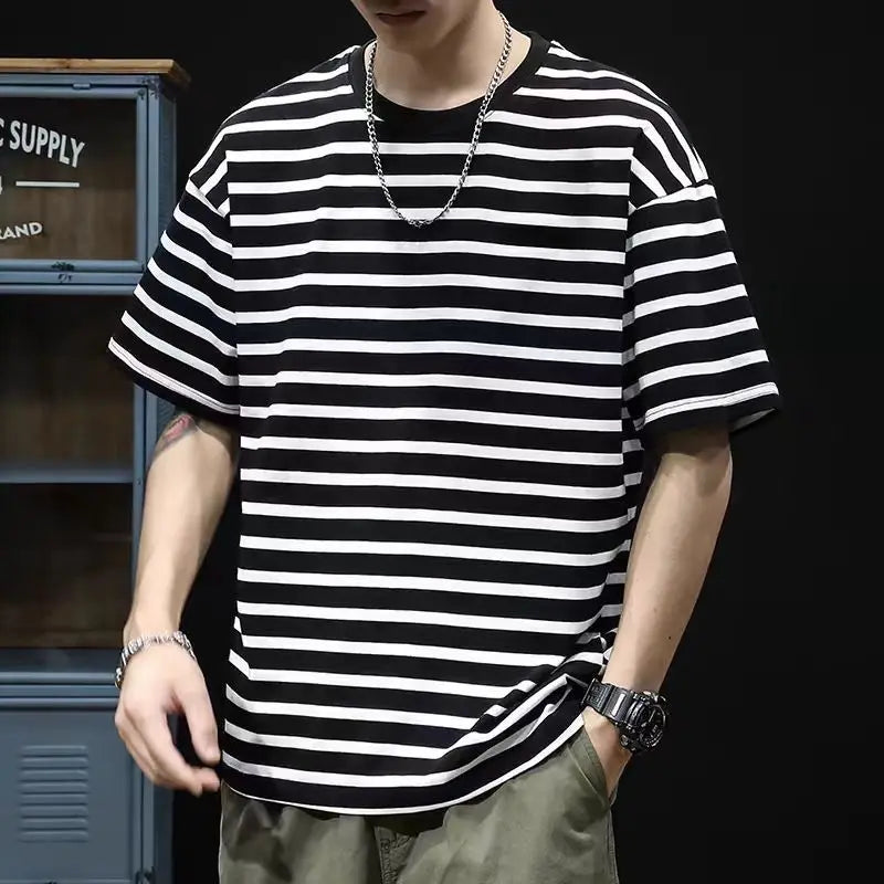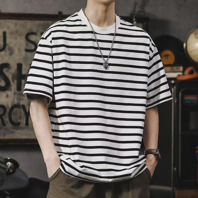 Listrado é um clássico que se reinventa! Nossa camiseta foi desenhada para ser sua peça-chave, combinando com tudo. Você vai se surpreender com a versatilidade!